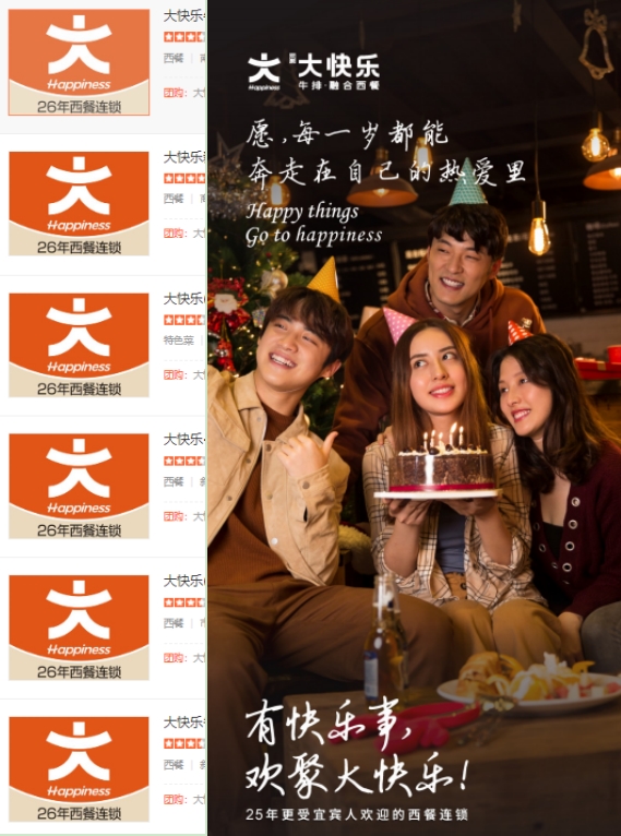1)大快乐=(腌制)牛排馆+休闲咖啡馆+川菜馆